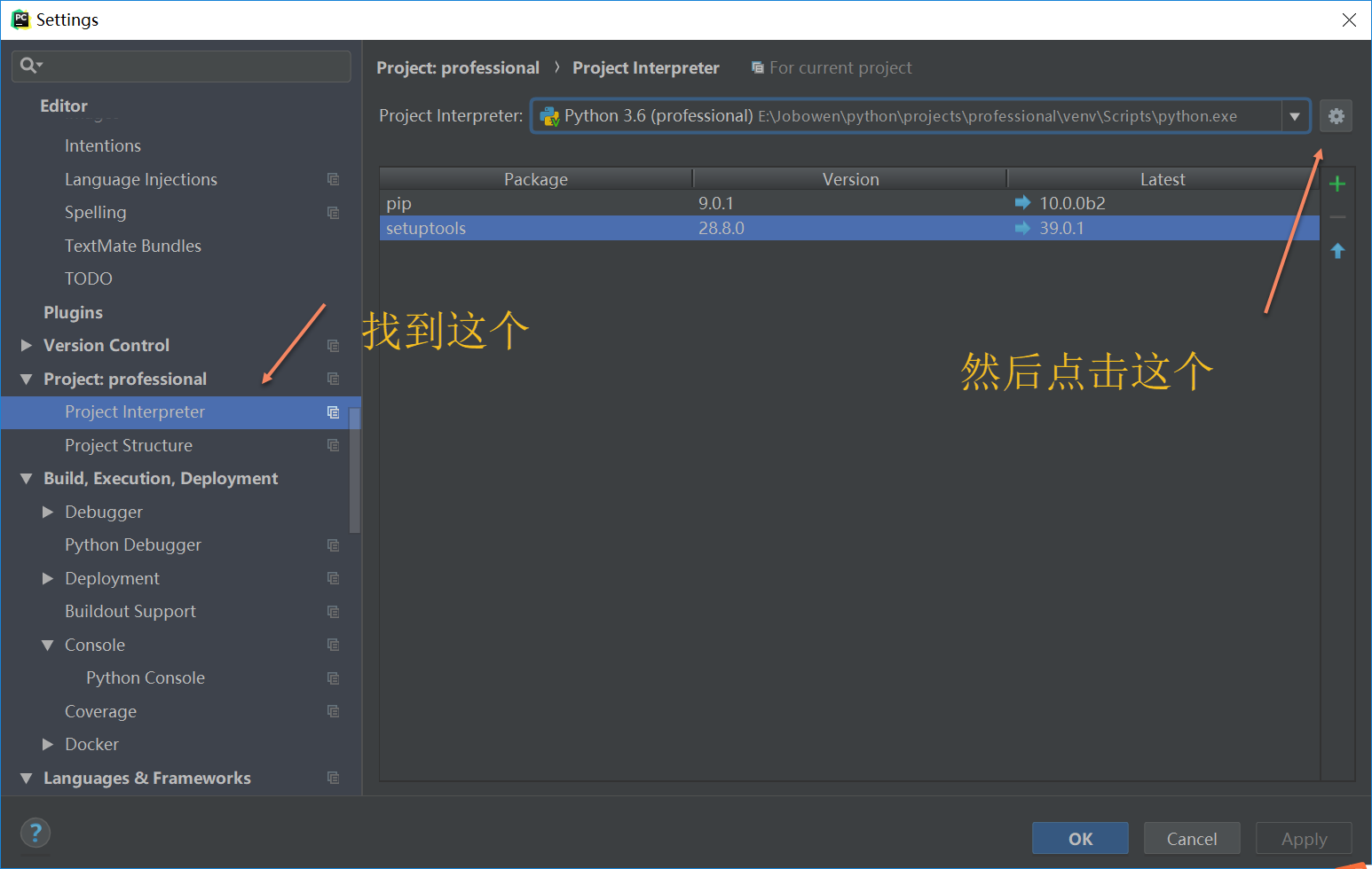 第二步,找到project interpreter,新增一个project interpreter: