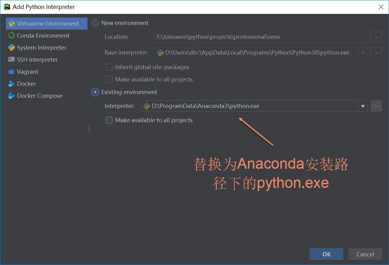 输入anaconda安装路径下的python: