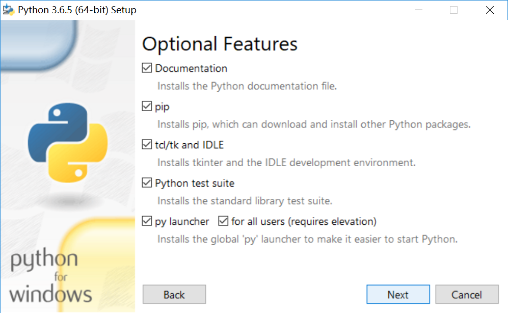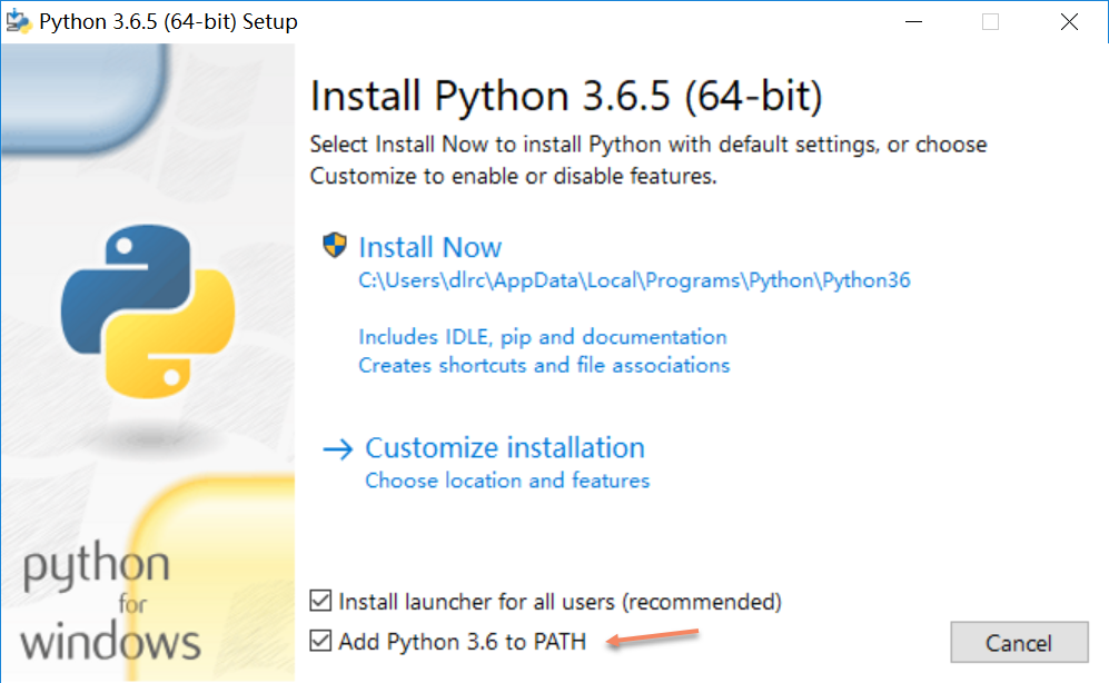 首先根据Windows版本(64位还是32位)下载对应的python3.6.5 对应的64位安装程序或32位安装程序,然后运行exe安装包:
