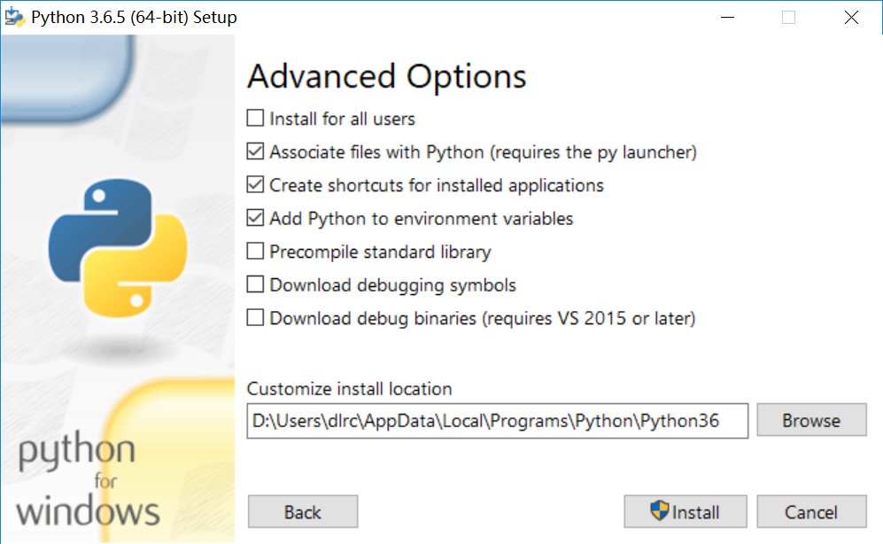 特別要注意勾上Add Python 3.6 to PATH,然后点击Customize installation(如果不想自定义可以点击Install Now即可完成安装)。